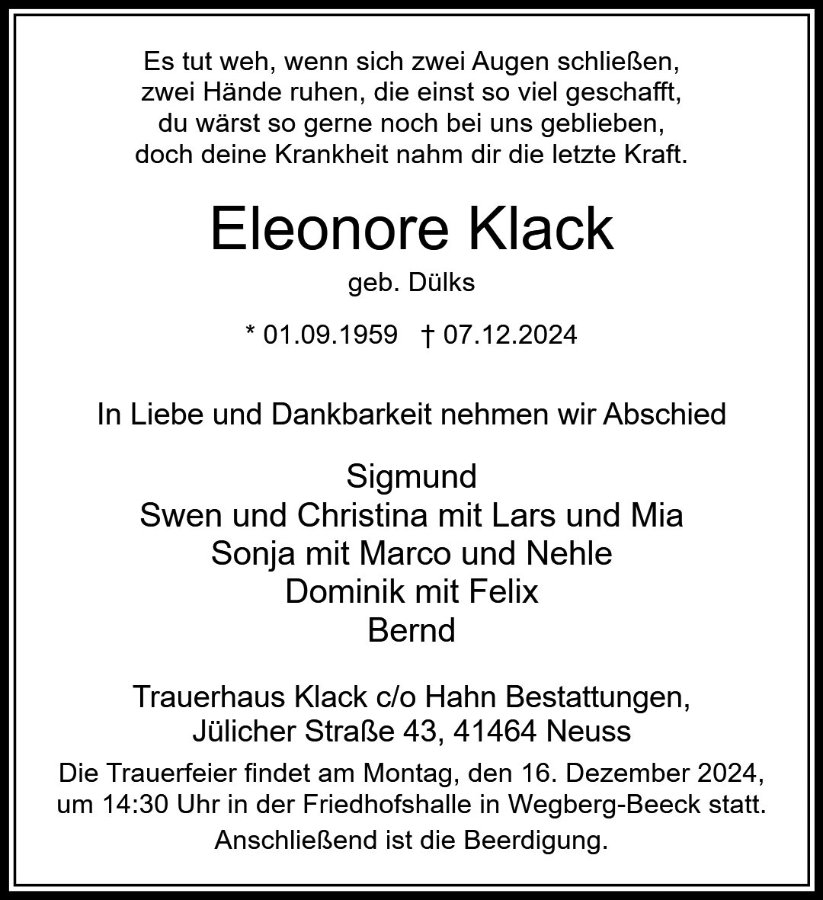 Eleonore Klack geb. Dülks