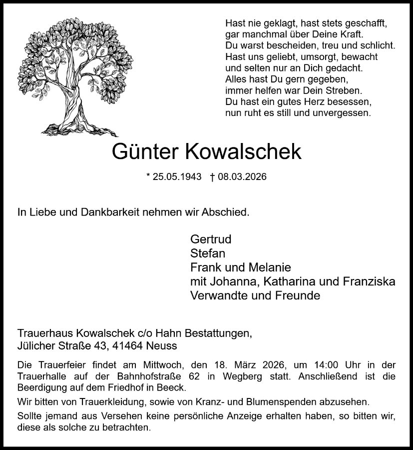 gestorben am 8. März 2026 in Erkelenz