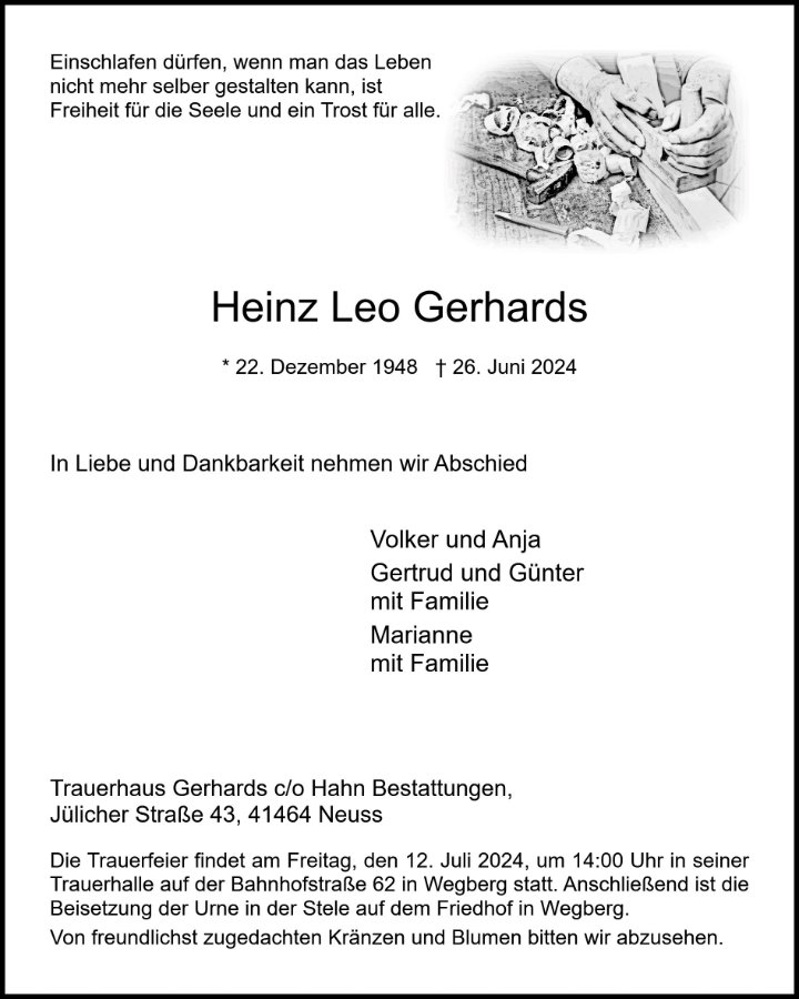 Heinz Leo Gerhardsgestorben am 26. Juni 2024
