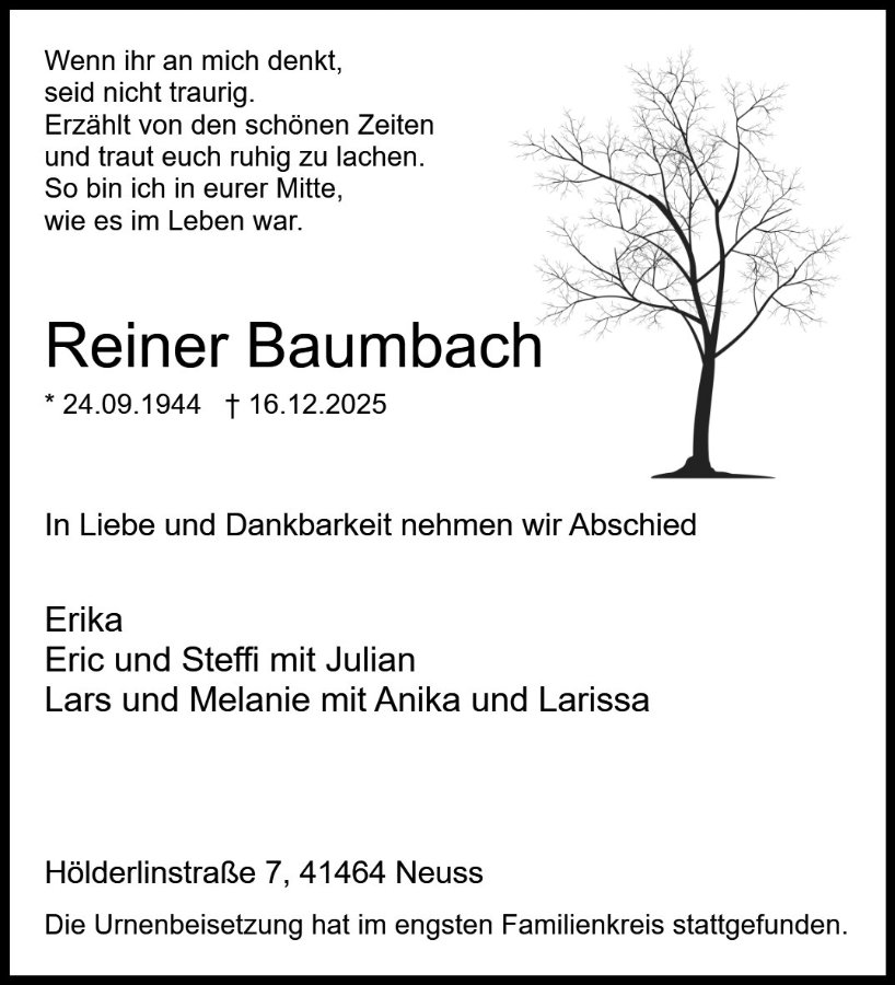 Reiner Baumbachgestorben am 16. Dezember 2025