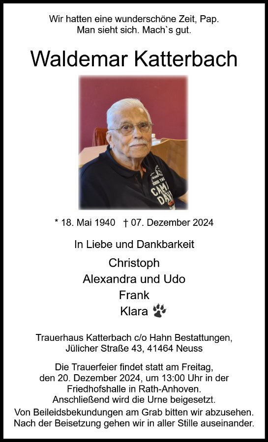 wir wünschen Ihnen von Herzen viel Kraft, dass Sie Menschen um sich haben, die Ihnen in dieser schweren Zeit beistehen und Halt geben. Zusätzlich können Sie auf dieser Gedenkseite Erinnerungen teilen und so das Andenken gemeinsam wachhalten.